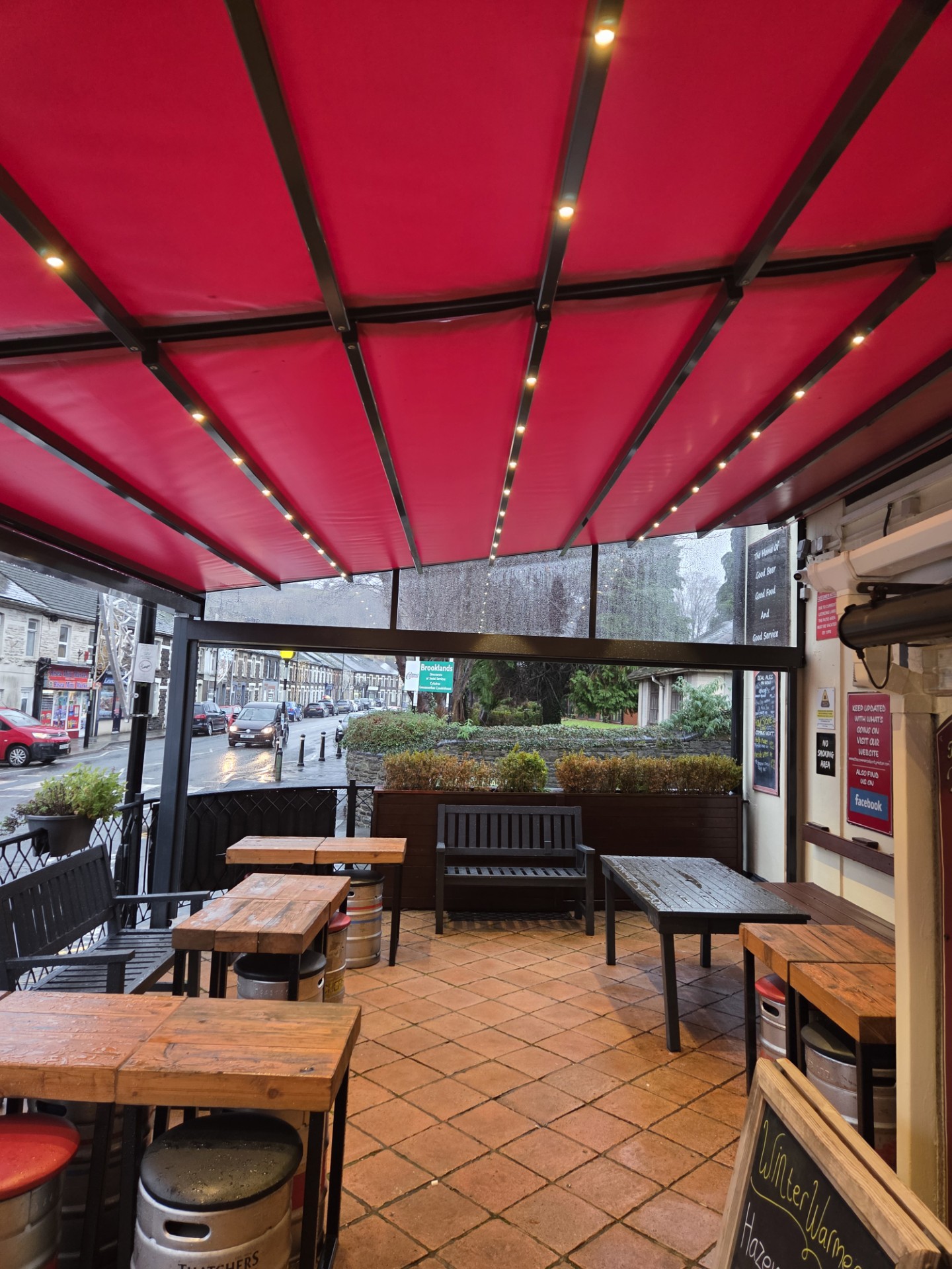 We recently installed this stunning bespoke Pergotex canopy for Commercial Inn, Newport.