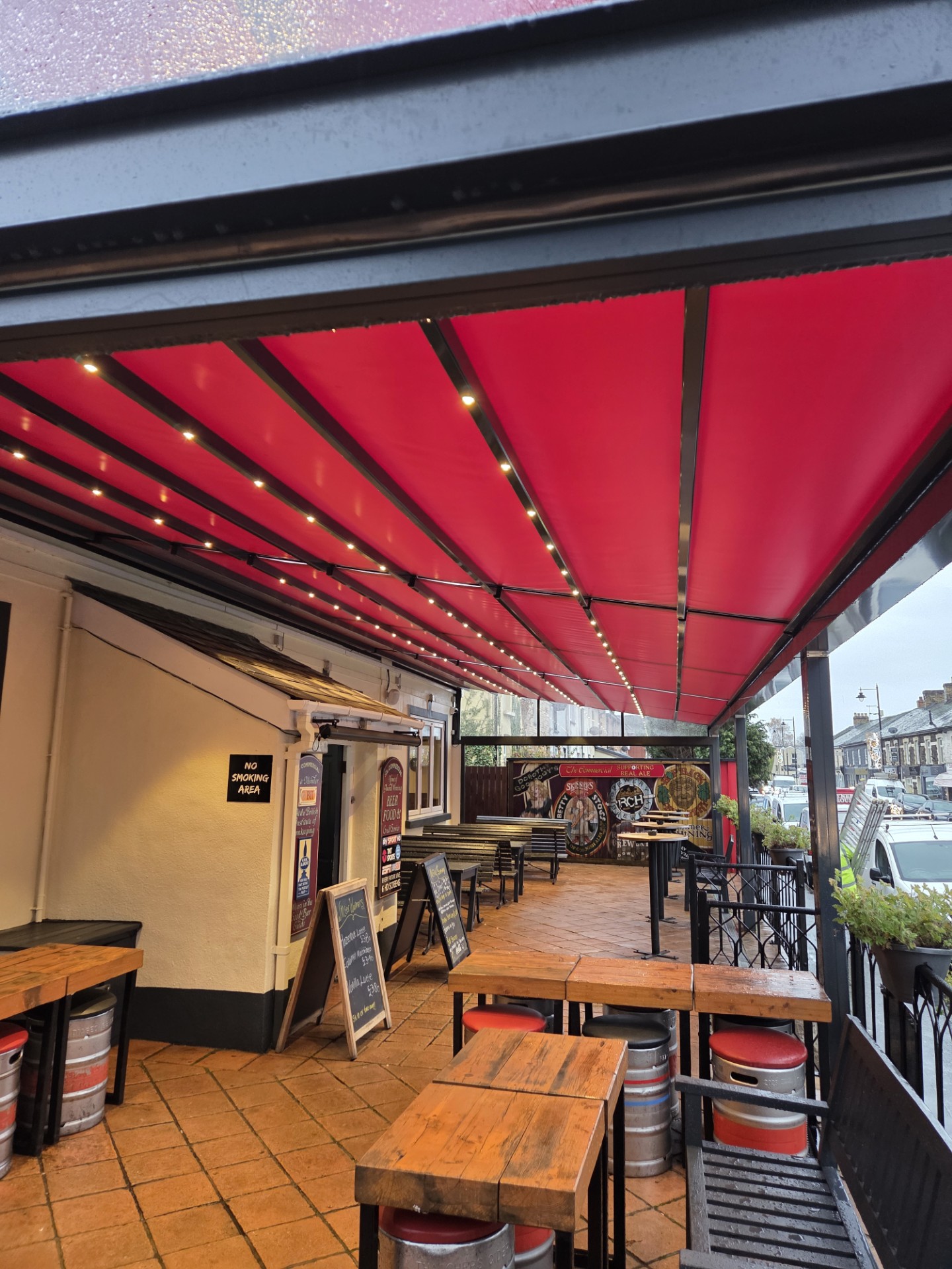 We recently installed this stunning bespoke Pergotex canopy for Commercial Inn, Newport.